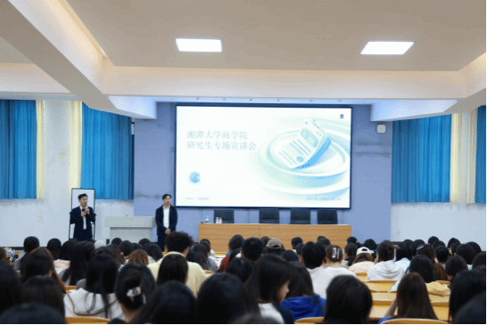 为打破考研信息壁垒,赋能院校精准对接,2025年10月14日15:30,“湘潭大学商学院研究生专场宣讲会”于玉衡南101多功能报告厅如期开展。我院特邀湘潭大学商学院朱健教授主讲,与来自大二至大四的400余名学子面对面交流。我院党委副书记王高见出席会议,会议由张青老师主持。