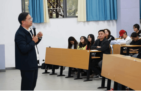 “两校均承载着红色基因,这构成了我们之间天然的纽带。”宣讲会伊始,朱健教授以两校的历史渊源拉近了与同学们的距离。在宣讲环节中,朱教授从当前的考研情况出发,逐步深入至精细化学习方向,内容全面覆盖了考研政策、形势分析、方向定位、备考策略,以及院校选择要点。此外,还介绍了湘潭大学的校史沿革、学院师资力量、硕士点实力与培养特色等。