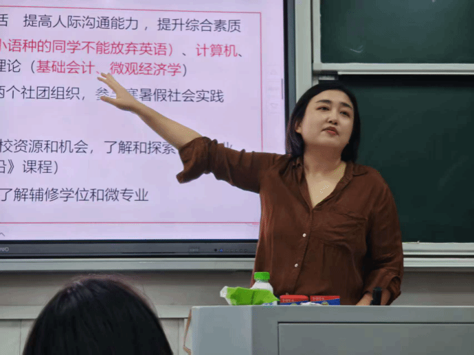 随后,刘筱韵老师为新生介绍了商学院卓越的育人理念和特色,并展示了我校优秀的教育成果。通过学姐学长的事例,分享他们的学习经历,形象鲜明地讲述会计专业的优势,增强学生们对会计专业核心竞争力的信心。她提出的大学学习规划,将时间管理、知识学习、实践锻炼和交流合作有机结合。帮助学生实现从高中学习思维到大学学习思维的转换。
