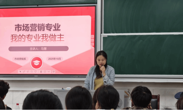 为帮助新生深入了解市场营销专业的魅力与前景,明确未来学习与发展方向,2025年10月14日14:30至17:30,我院市场营销专业介绍会在城南书院校区教学楼101顺利举行。本次介绍会由市场营销系主任马慧博士主讲,全体2025级市场营销新生参会。