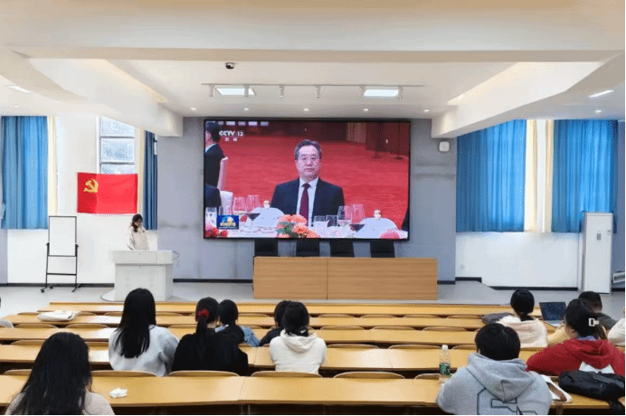 “一片”强担当,奋进新征程。商学院学生党支部组织全体学生党员集中观看庆祝中华人民共和国成立76周年招待会视频,认真学习习近平总书记重要讲话。总书记对青年担当的殷切嘱托,让党员们深刻感悟到家国与个人的紧密联系,更坚定了他们要以青春之力为民族复兴添砖加瓦的信念。