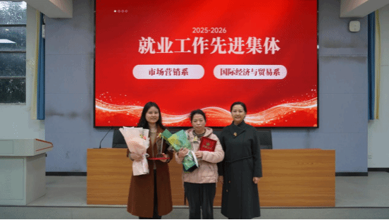 在热烈的掌声中,校党委副书记黄快林教授、人事处处长黄小喜教授、招生就业处处长殷章馨教授分别为“科研标兵”获得者汤礼莎、文连阳、邵佳老师,“教学能手”获得者刘筱韵、彭小舟、马慧老师,“就业工作先进集体”获得团队市场营销系、国际经济与贸易系颁发证书和奖杯。